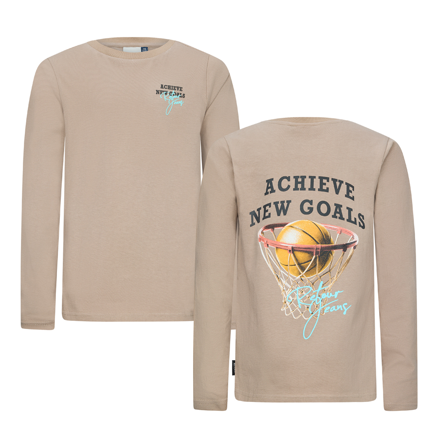 • Long sleeve T-shirt uit de wintercollectie van Retour Jeans. Voorzien van een kleine borstprint en een grote basketbalprint met de tekst “Achieve New Goals” op de achterkant. Gemaakt van zachte katoenkwaliteit voor optimaal draagcomfort.