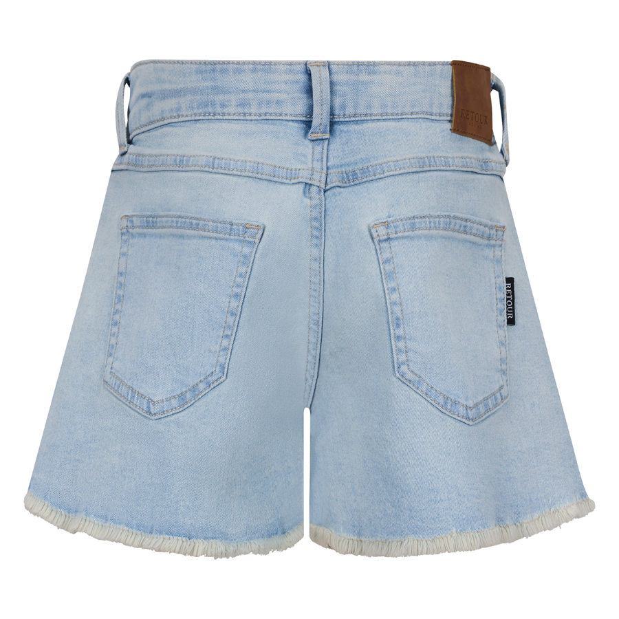 • Deze wide fit denim short met hoge taille uit de zomercollectie van Retour Jeans heeft super elastisch denim voor een optimale bewegingsvrijheid. Voorzien van een verstelbaar elastiek in de taille en een gulp met knoop- en ritssluiting.