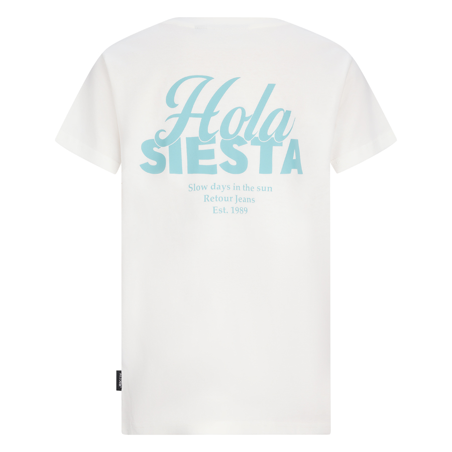 • T-shirt uit de zomercollectie van Retour Jeans met chest- en backprint. Gemaakt van van 100% katoen voor een optmaal draagcomfort . T-shirt heeft een oversized fit, korte mouwen en een ronde hals.