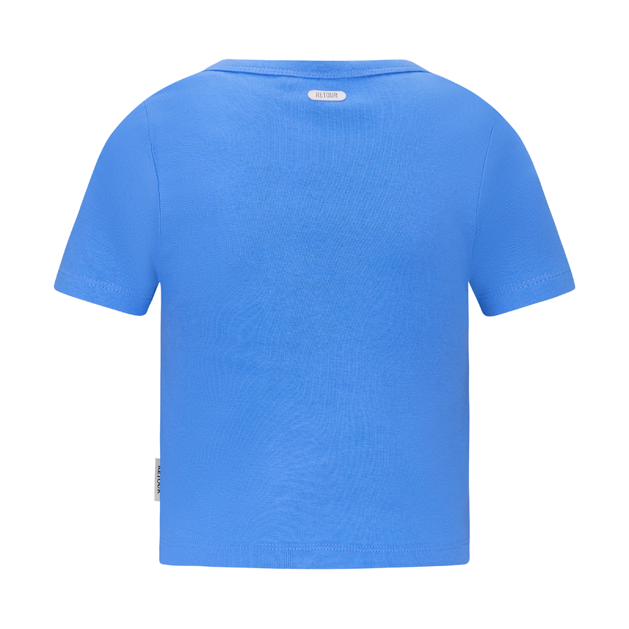 • Een kortvallende nauwsluitende top uit de zomercollectie van Retour Jeans. De top heeft studs rondom het boordje en heeft korte mouwen.