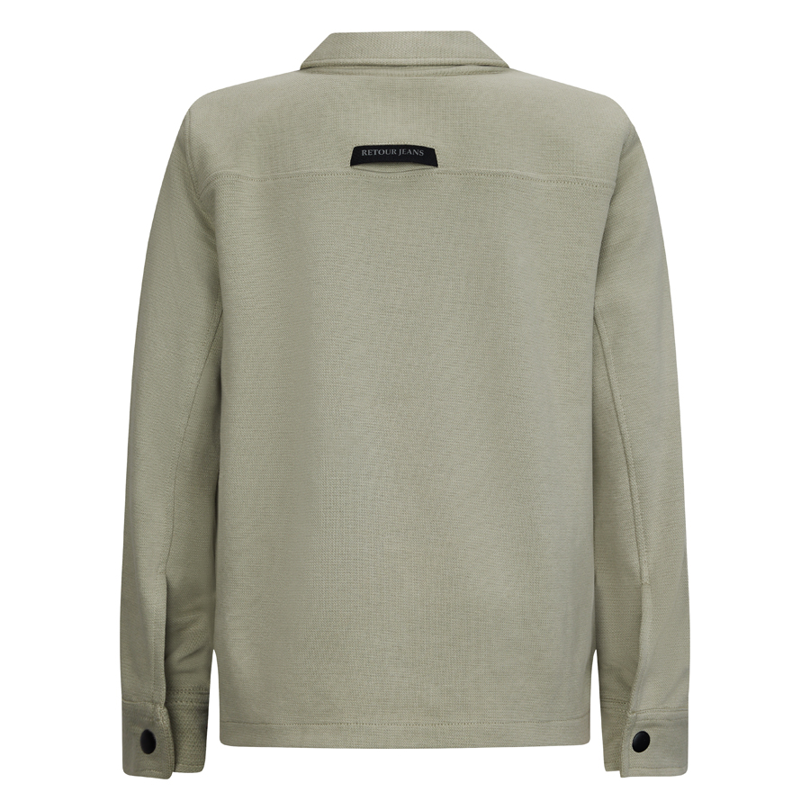 • Een over shirt uit de zomercollectie van Retour Jeans van sweatstof. Het shirt heeft een kraag, drukknoopsluiting, borstzakken met klep en drukknoop en lange mouwen met een manchet met drukknoopsluiting.