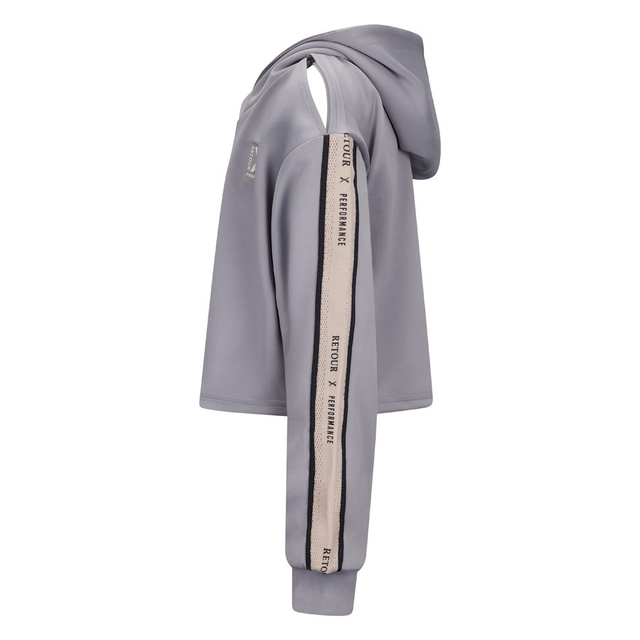 • PERFORMANCE COLLECTIE | Korte hoodie uit de zomercollectie van Retour Jeans met cut-out shoulders. De hoodie heeft een capuchon en een geribde boord aan de onderkant en onder aan de mouwen.