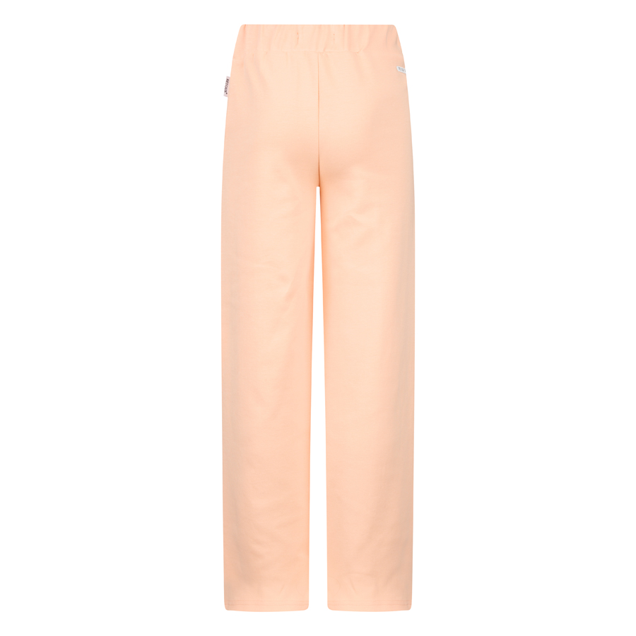 • Een broek van sweat stof uit de zomercollectie van Retour Jeans met een hoge taille en wijde, licht uitlopende pijpen. De broek heeft bekleed elastiek in de taille.