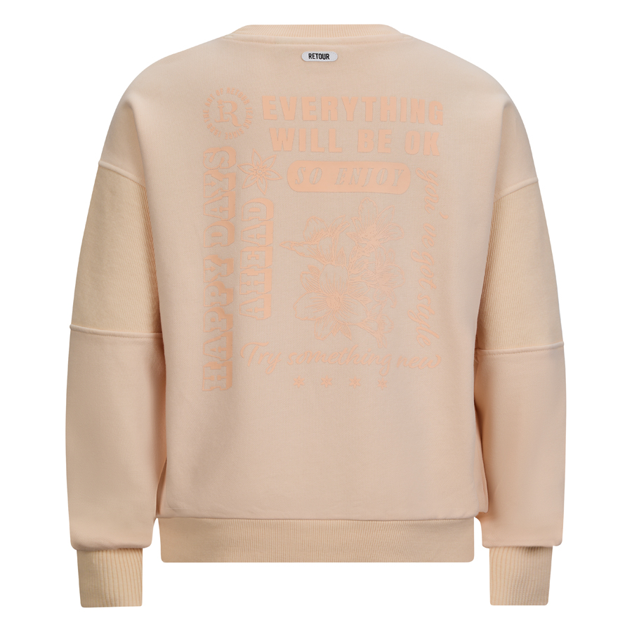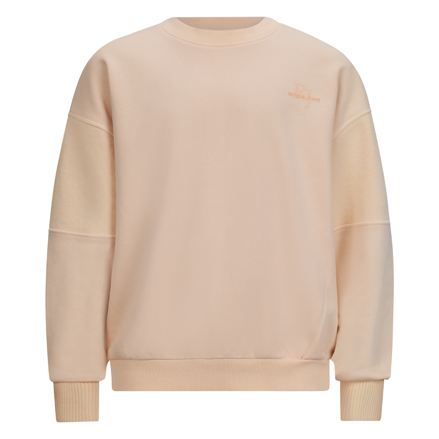 • Sweater uit de zomercollectie van Retour Jeans met verlaagde schoudernaden en een loose fit. De sweater heeft een geribde boord rond de hals, aan de onderkant en onder aan de mouwen.