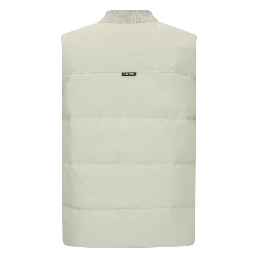 • Een gewatteerde bodywarmeruit de zomercollectie van Retour Jeans. De bodywarmer heeft een opstaande boord, een ritssluiting en steekzakken met druknnoopsluiting.