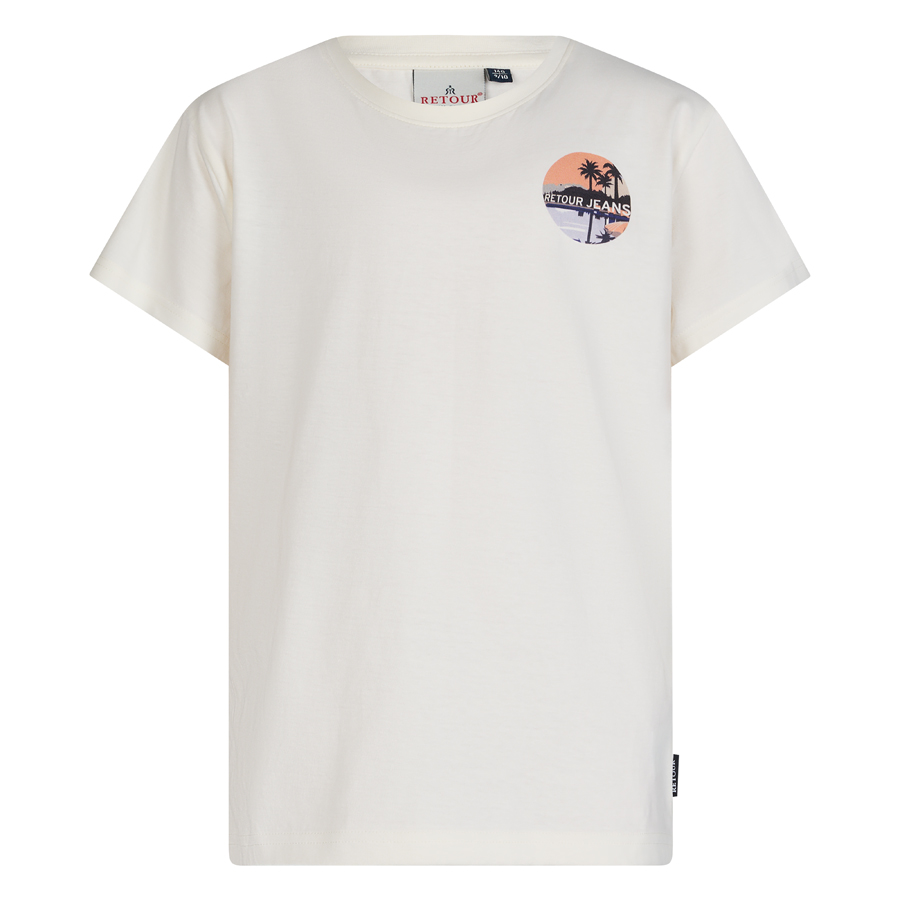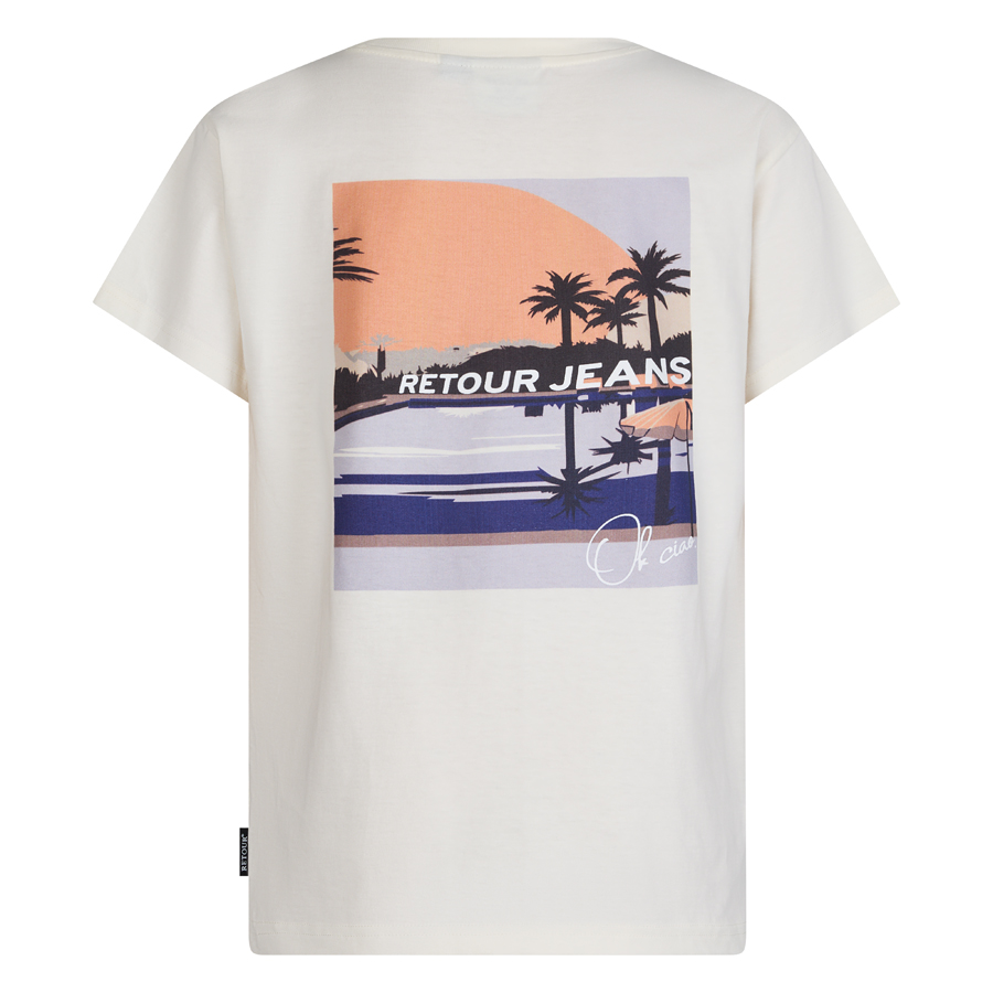 • T-shirt from the summer collection of Retour Jeans. The T-shirt has a loose fit, short sleeves and a round neckline.