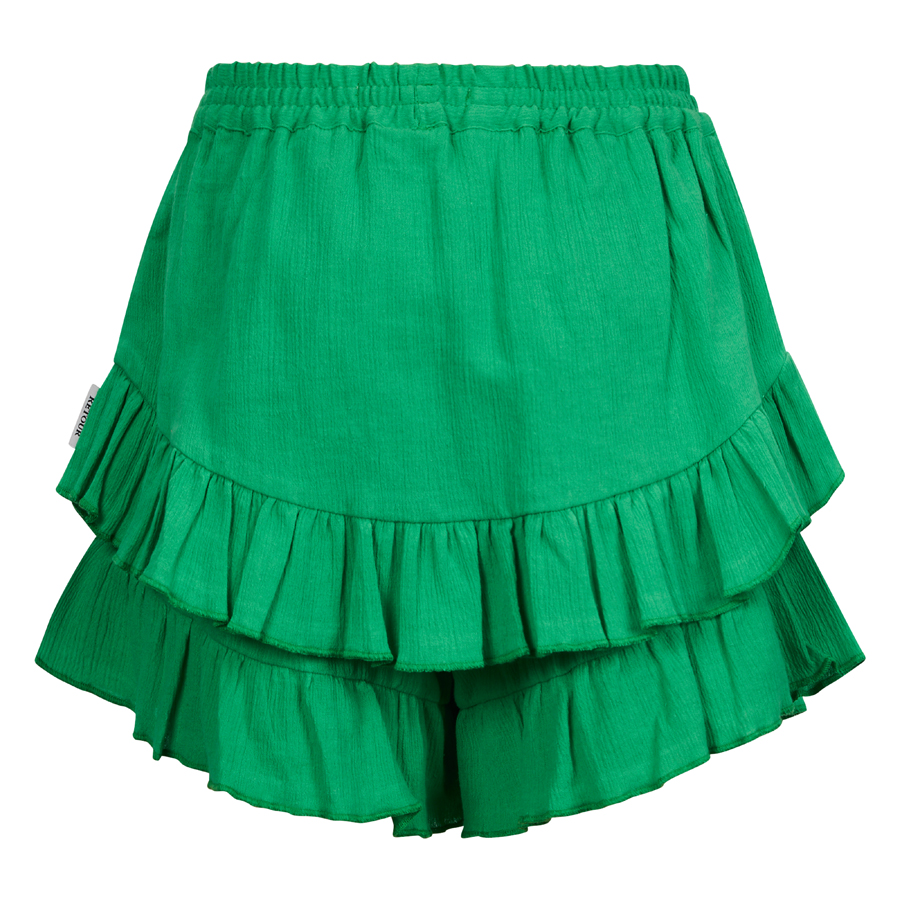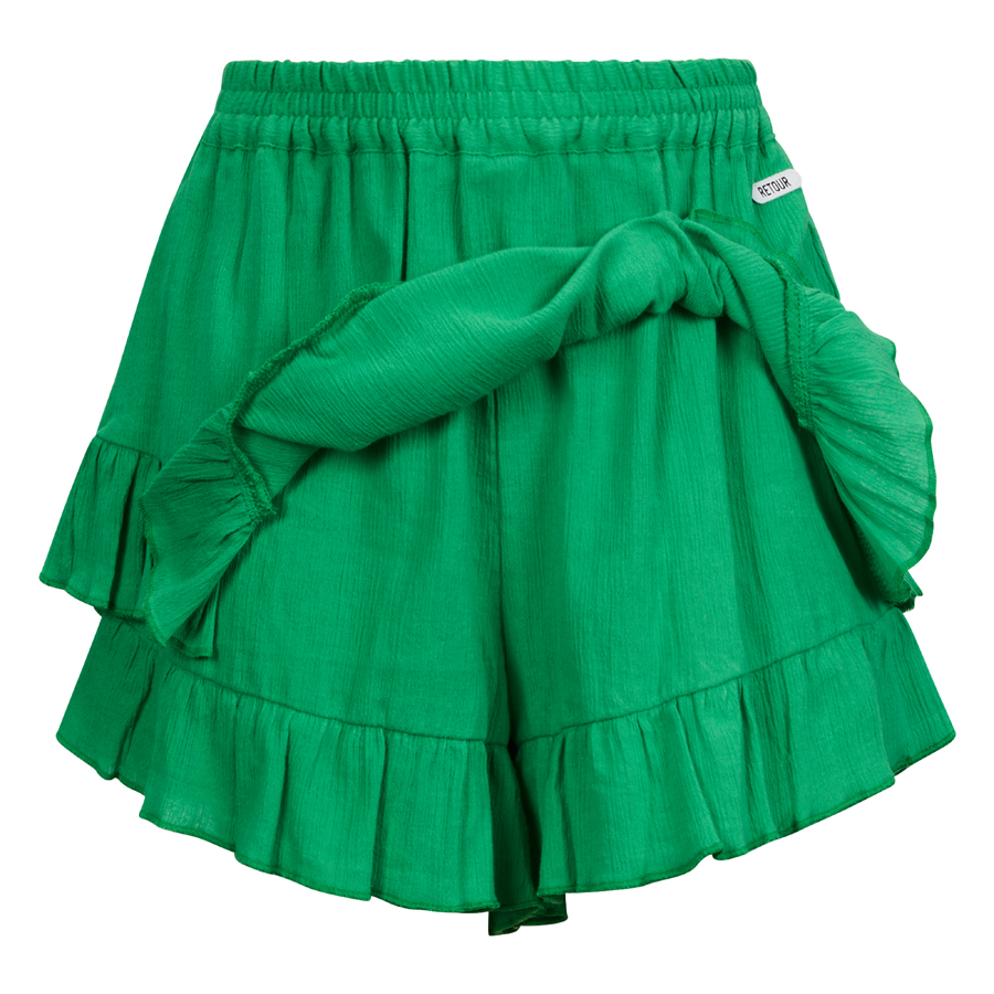 • Stroken skort uit de zomercollectie van Retour Jeans van crêpe stof. Het skortje heeft elastiek in de taille en een brede volant onderaan.