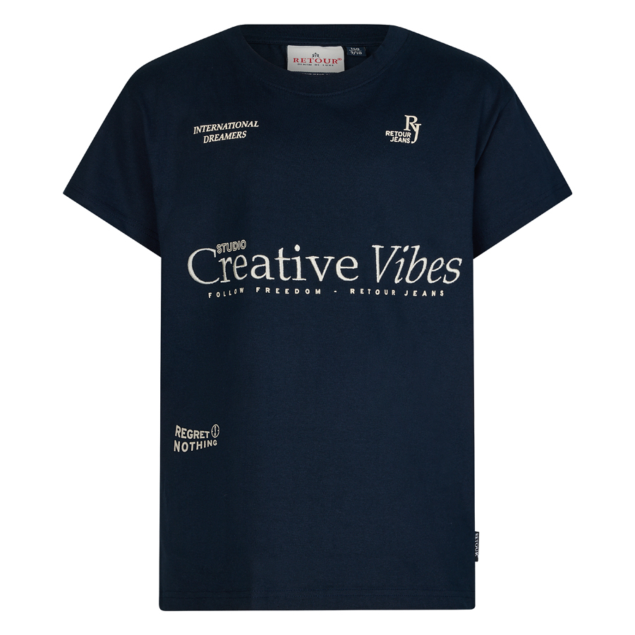 • T-shirt uit de zomercollectie van Retour Jeans van stevig katoen. Het T-shirt heeft een loose fit, korte mouwen en een ronde hals.