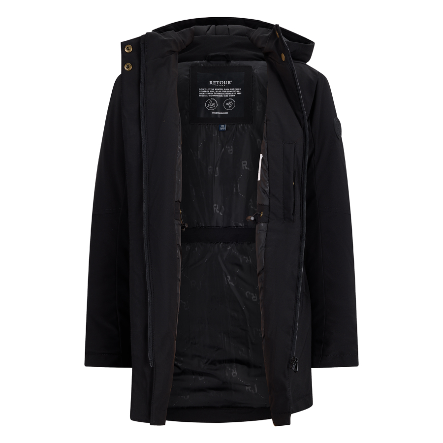 Deze jas is ontworpen om bescherming te bieden tegen lichte regen en vochtige omstandigheden dankzij zijn waterafstotende eigenschappen.