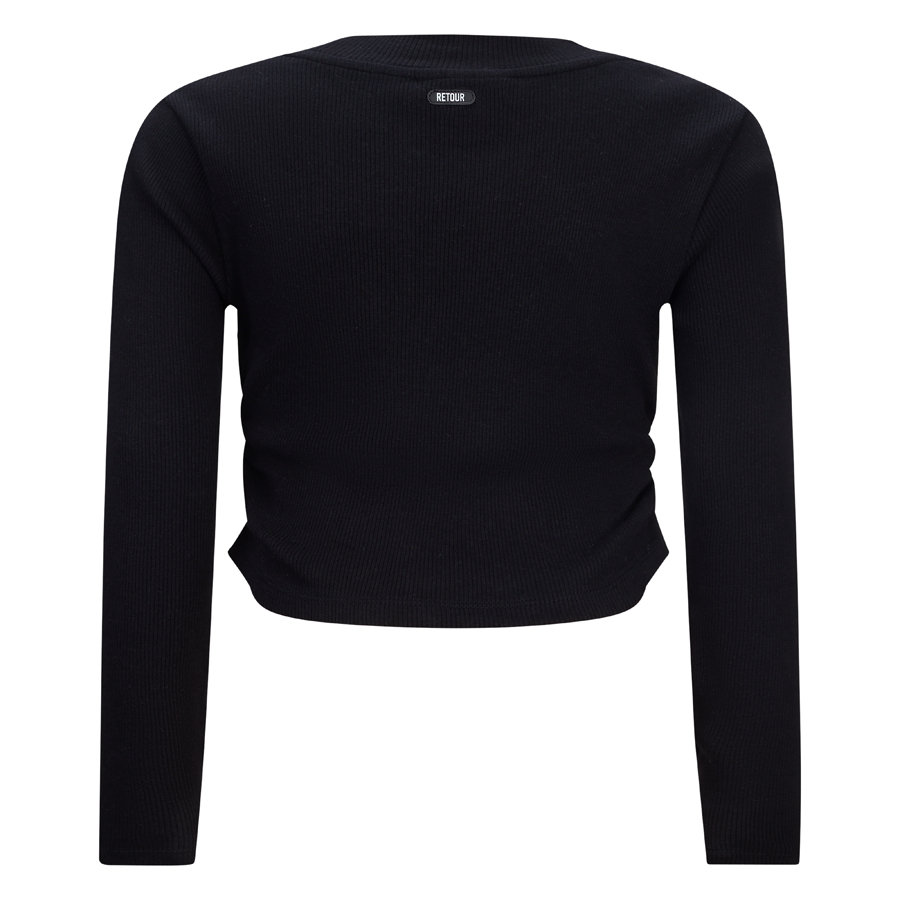 • Short close-fitting rib fabric top from Retour Jeans's winter collection featuring a turtleneck and pleats at the side seam.