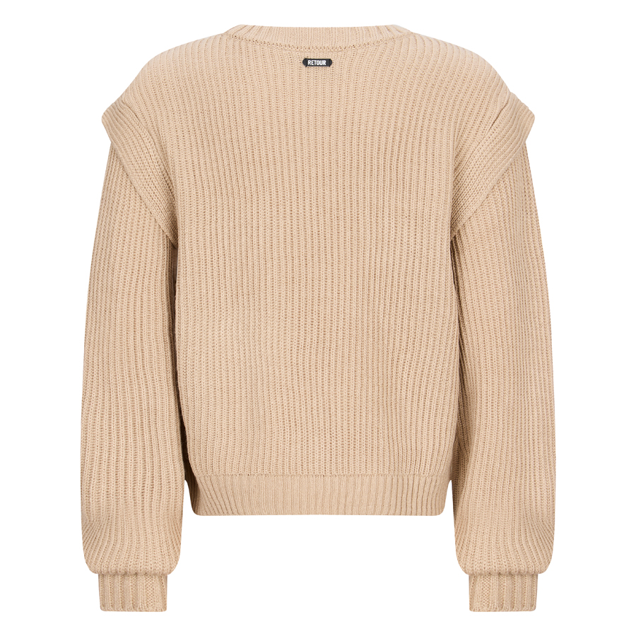 • Geef je outfit een cozy upgrade met deze trui uit de wintercollectie van Retour Jeans. Deze grofgebreide trui heeft een relaxte pasvorm met verlaagde schoudernaden en een ronde hals. De geribde boorden aan de mouwen en zoom zorgen voor extra comfort en een mooie fit. Perfect om te combineren met je favoriete jeans of rok voor een casual maar stijlvolle look.