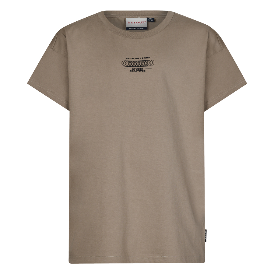 • T-shirt uit de zomercollectie van Retour Jeans met een artwork aan de voorzijde en achterzijde. Het T-shirt heeft een oversized fit, korte mouwen en een ronde hals.