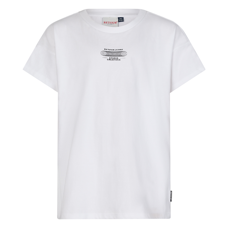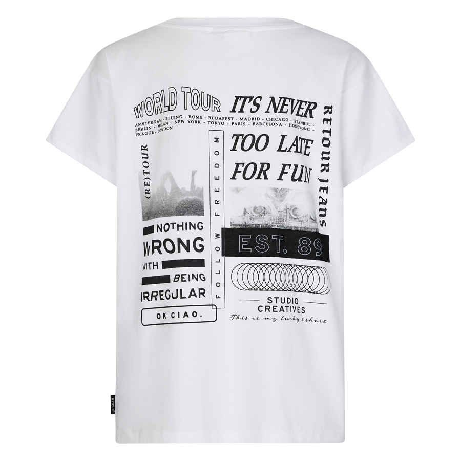 • T-shirt uit de zomercollectie van Retour Jeans met een artwork aan de voorzijde en achterzijde. Het T-shirt heeft een oversized fit, korte mouwen en een ronde hals.