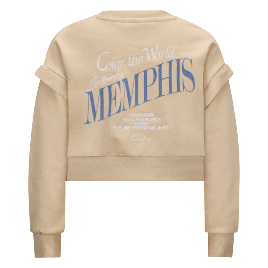 • Een mouwloze korter vallende sweater uit de Retour Jeans x Memphis van sweatstof. De top heeft een geribde boord aan de onderkant en langs de boord.