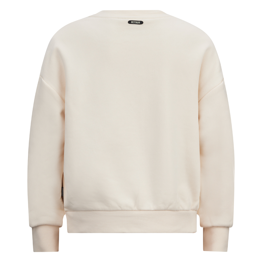 • Sweater uit de wintercollectie van Retour Jeans met verlaagde schoudernaden en een oversized fit. De sweater heeft een geribde boord rond de hals, aan de onderkant en onder aan de mouwen.