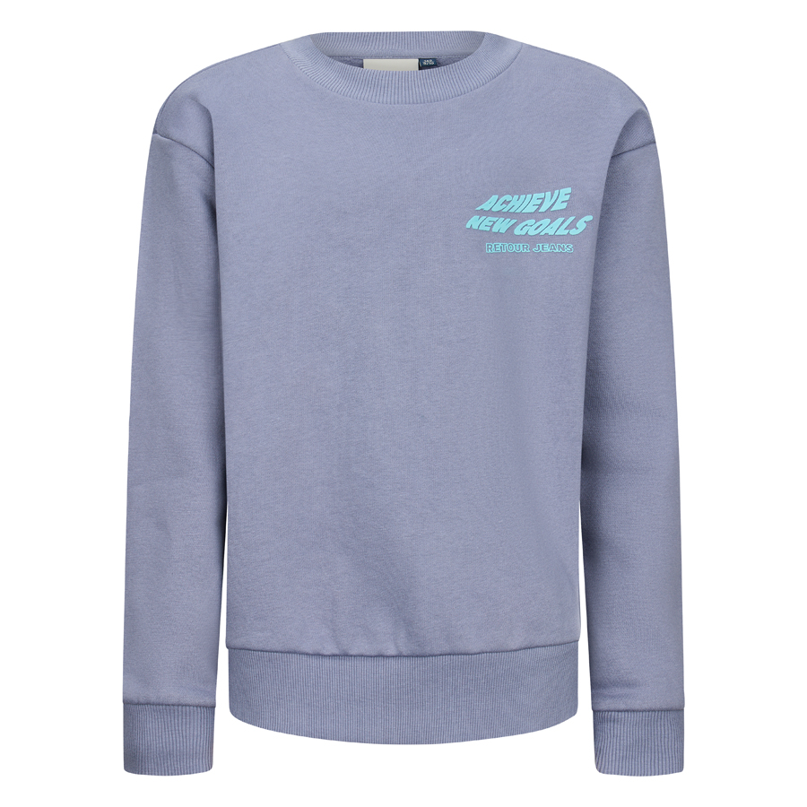 • Comfortabele crewneck sweater van Retour Jeans uit de wintercollectie van Retour Jeans. Voorzien van opvallende witte print op zowel de borst als de rug met de tekst "Achieve new goals". Gemaakt van zachte katoenmix en afgewerkt met geribde boorden. Combineer met een cargobroek of jogger voor een relaxte look.