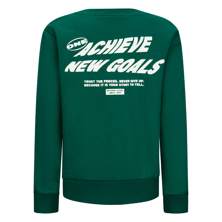 • Comfortabele crewneck sweater van Retour Jeans uit de wintercollectie van Retour Jeans. Voorzien van opvallende witte print op zowel de borst als de rug met de tekst "Achieve new goals". Gemaakt van zachte katoenmix en afgewerkt met geribde boorden. Combineer met een cargobroek of jogger voor een relaxte look.
