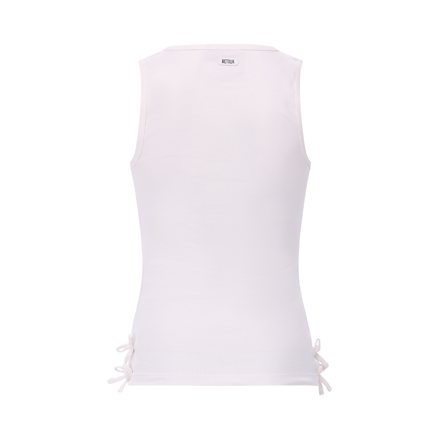 • Een singlet uit de zomercollectie van Retour Jeans. Singlet heeft aan de zijkant vastgestikte strikjes.