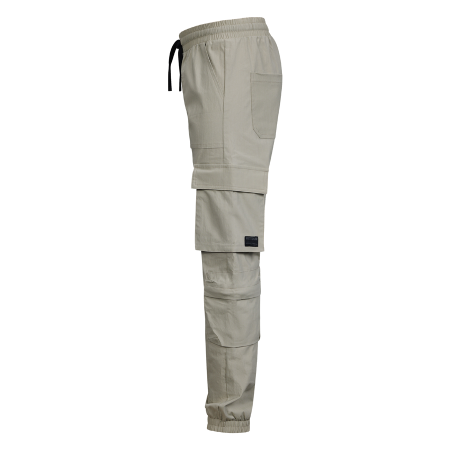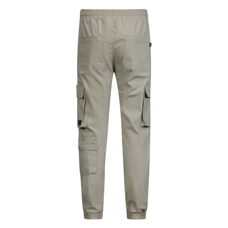 • Cargo broek van parachute stof uit de zomercollectie van Retour Jeans met smal toelopende pijpen en een elastieken boord onderaan. De broek is voorzien van een verstelbaar elastiek in de taille met een aantrekkoord. Het model heeft steekzakken en zakken op de pijp met klep en klittenbandsluiting.