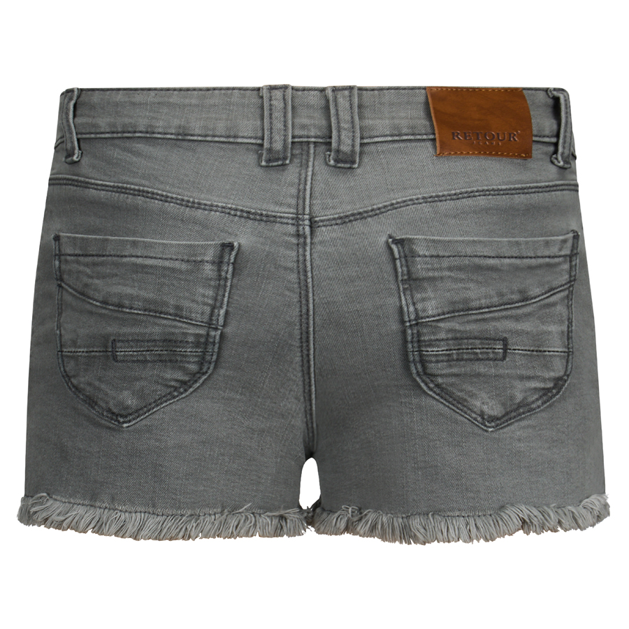 • Deze denim short met hoge taille uit de zomercollectie van Retour Jeans heeft super elastisch denim voor een optimale bewegingsvrijheid. Voorzien van een verstelbaar elastiek in de taille en een gulp met knoop- en ritssluiting.