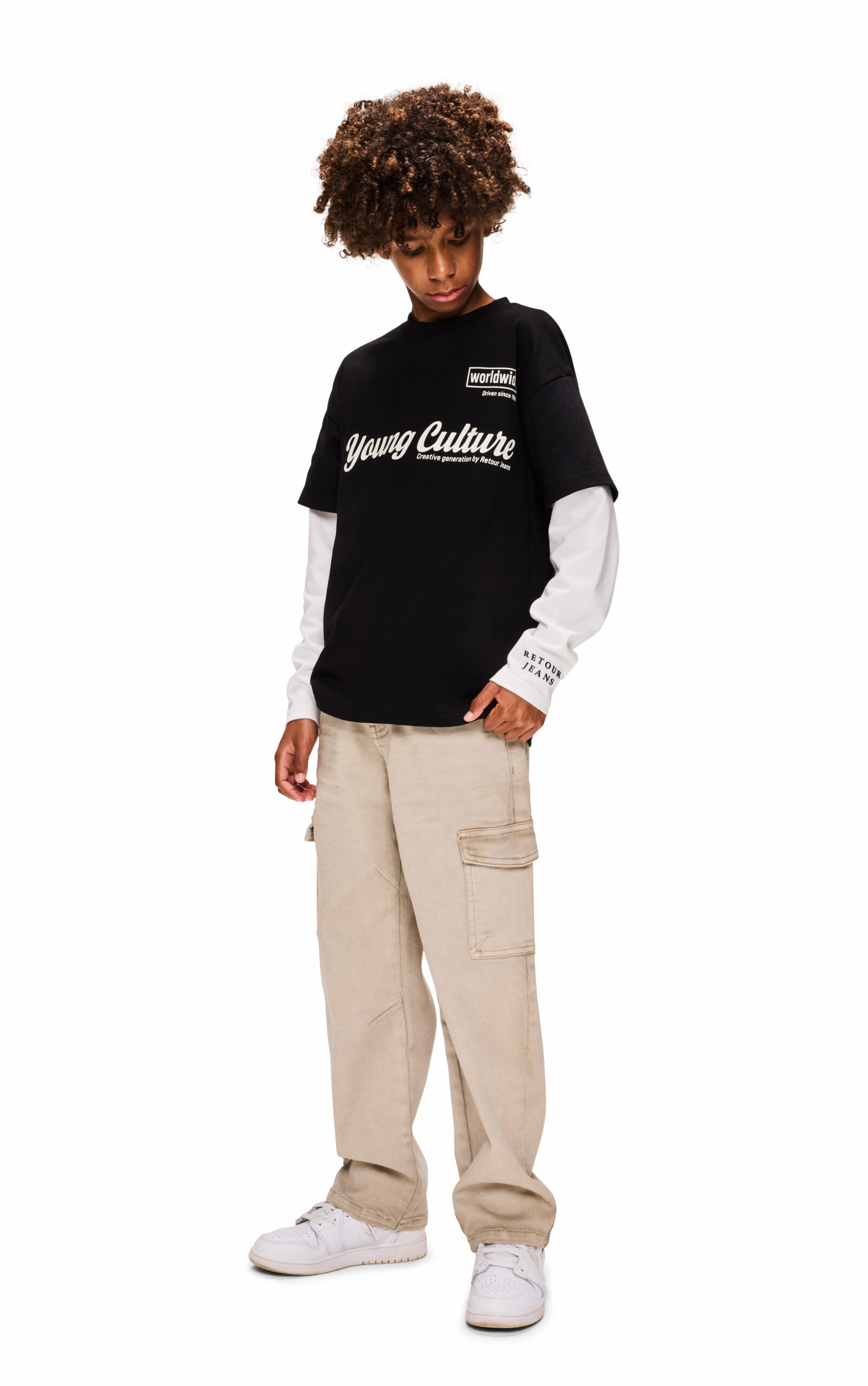 • Cargo broek uit de zomercollectie van Retour Jeans met een relaxed fit. De broek is voorzien van bekleed elastiek en een aansnoerkoord in de taille. Het model heeft steekzakken, achterzakken en een zak op de pijpen met klep en klittenbandsluiting.