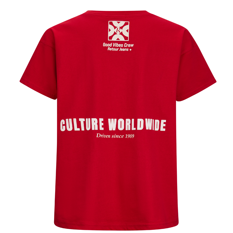• T-shirt uit de zomercollectie van Retour Jeans met backprint. Het T-shirt heeft een oversized fit, korte mouwen en een ronde hals.