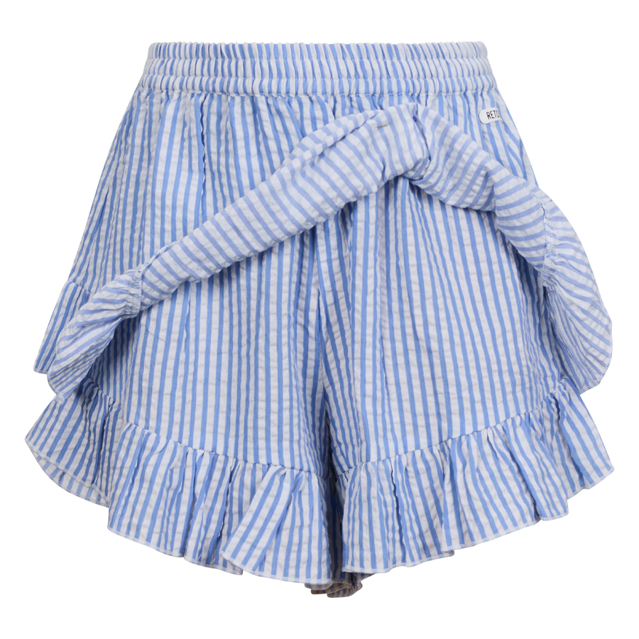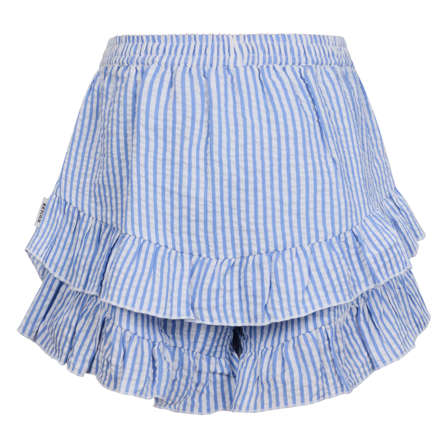 • Stroken skort uit de zomercollectie van Retour Jeans. Het skortje heeft elastiek in de taille en een brede volant onderaan.
