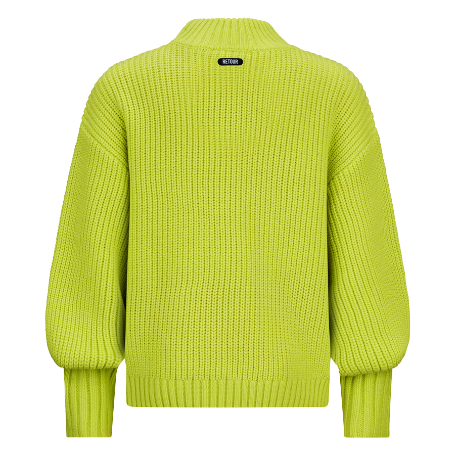 • Een ribgebreide coltrui uit de wintercollectie van Retour Jeans met een oversized fit. De trui heeft brede ribgebreide cuffs onderaan de mouwen voor een pofmouw effect.