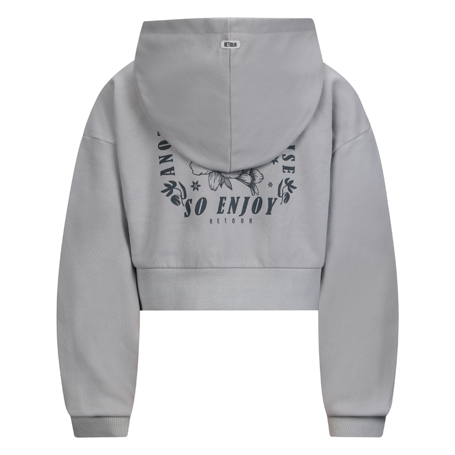 • Cropped vest uit de zomercollectie van Retour Jeans met een capuchon, een ritssluiting voor, steekzakken en een geribde boord aan de onderkant en onder aan de mouwen.