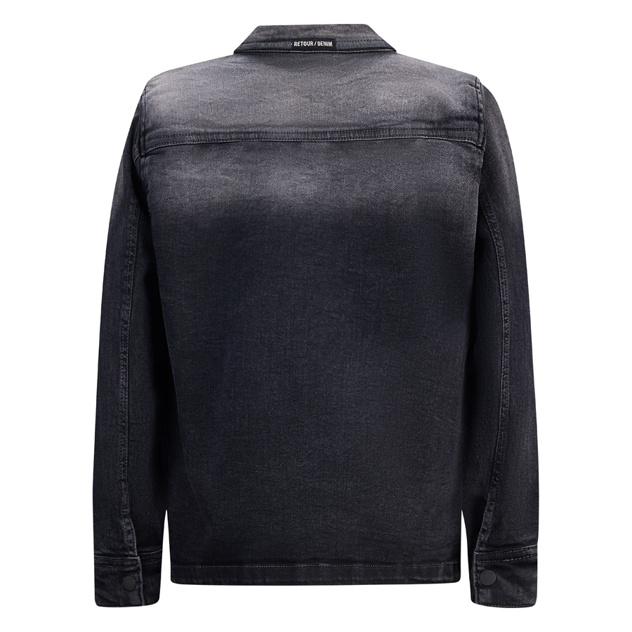 • Een worker jacket van denimstof met een kraag en een drukknoopsluiting voor uit de wintercollectie van Retour Jeans. Het model heeft een manchet met drukknoop onder aan de mouwen en steekzakken op de borst met drukknoop.