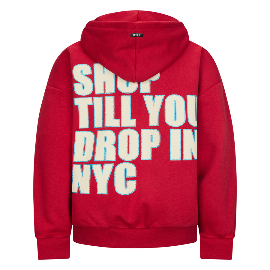• Deze coole oversized hoodie uit de wintercollectie van Retour Jeans is een echte blikvanger! De voorkant heeft een subtiele print, maar op de achterkant staat een grote, stoere tekst: "SHOP TILL YOU DROP IN NYC". Gemaakt van een zachte sweatstof en perfect om lekker in weg te kruipen op koude dagen.