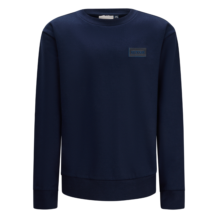 • Basic sweater uit de zomercollectie van Retour Jeans. De sweater heeft een geribde boord rond de hals, aan de onderkant en onder aan de mouwen.