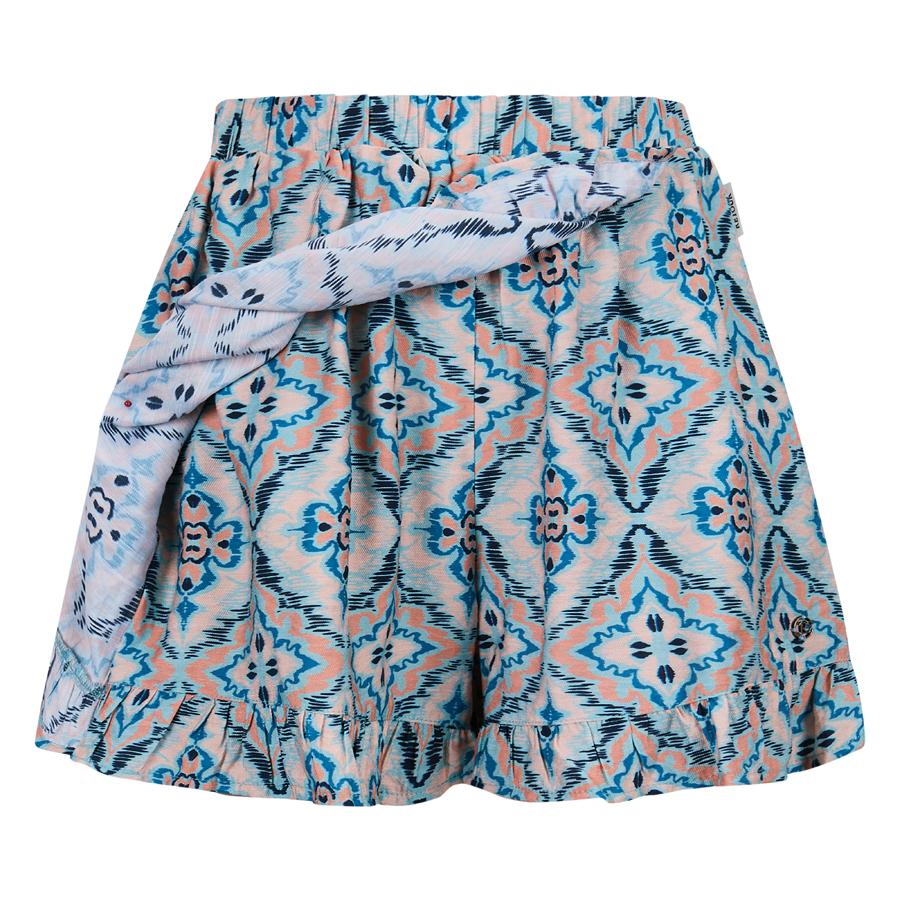 • Een korte skort uit de zomercollectie van Retour Jeans met overslag voor. Het model heeft bekleed elastiek in de taille en heeft steekzakken.