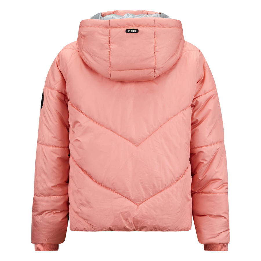 • Een gewatteerde jas van een doorgestikte kwaliteit uit de wintercollectie van Retour Jeans. De jas heeft ritssluiting voor met kinbescherming, zakken met ritssluiting aan de voorzijde en een binnenzak met drukknoop en een afneembare capuchon. De jas heeft bekleed elastiek aan de onderkant.
