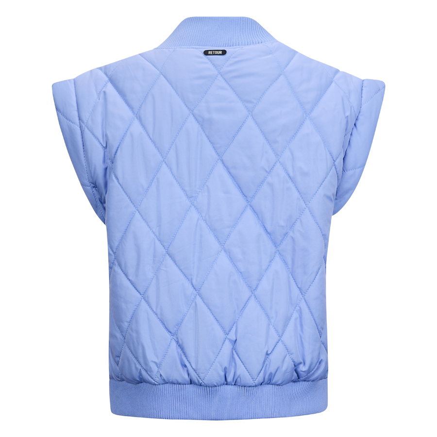 • Gewatteerde jas en bodywarmer in een uit de zomercollectie van Retour Jeans. De jas heeft een ritssluiting voor, zakken met drukknoop aan de voorzijde, een binnenzak met drukknoopsluiting en een opstaande boord langs de hals. Het jack heeft afritsbare mouwen, zodat je een jas en bodywarmer in een hebt. Het jack is gevoed, waterafstotend en winddicht.